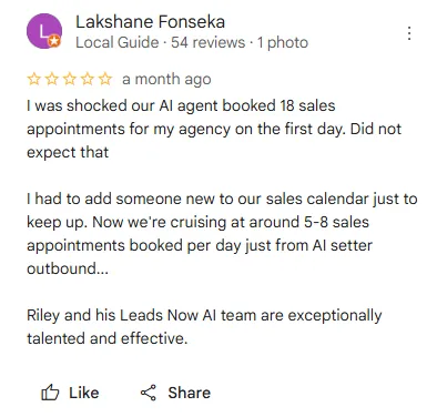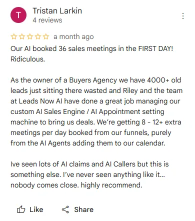 That's why 100% of our LeadsNow leads (besides referrals, and we get a lot of those) come from our own AI Agents self-generating their own work.